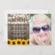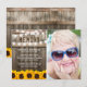 Sending a funeral thank you note is a simple way to thank those that showed you comfort during your time of bereavement. This country chic sympathy card features a rustic wood background, a photo of the person who has passed away, bright yellow sunflowers, string lights, the saying "In Loving Memory", their name, birth/death dates, and a personalized thank you note.