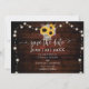 A flower pot, made of tree bark and filled with sunflowers, lavender, wheat and baby's breath make for a lovely illustration, hand-painted in digital watercolor, that decorates this rustic elegant wedding save the date that also features a red wood board background and strings of lights. Romantic and charming, it is a lovely choice for a barn wedding, an outdoor wedding, a garden wedding or any rustic setting.
