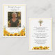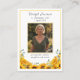 An elegant memorial photo funeral memorial prayer cards featuring pretty yellow sunflowers. You can customize with your chosen prayer, psalm or poem. Elegant botanical border on both sides and a wooden cross with leaves on the back. The serene, natural aesthetic of greenery and flowers gives a calm and beautiful theme for funeral services and it symbolizes goodness, strength, faith and light.