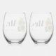 Rustic Sunflowers Mr. and Mrs. Stemless Wine Glass