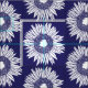Rustic boho sunflower patterned fabric in classic navy blue and white