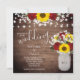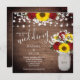 This design features a mason jar vase filled with burgundy / dark red roses, sunflowers and baby's breath on a rustic wood background with string lights. Click the customize button for more flexibility in modifying the text. Variations of this design, different paper types, as well as coordinating products are available in our shop, zazzle.com/store/doodlelulu. Contact us if you need this design applied to a specific product to create your own unique matching item! Thank you so much for viewing a DoodleLulu by 2 june bugs design!
