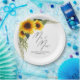 Rustic Sunflowers Script Mr. and Mrs. Wedding Paper Plates