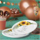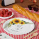 Add these personalized wedding paper plates to your celebration. The design features elegant script text "Mr. and Mrs." and is accented with a sunflower graphic. This plate is perfect for a fall country wedding reception.