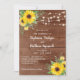 Rustic Sunflowers String Lights Wood Wedding Invitation