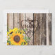 Rustic wood with heart etching and sunflower bouquet thank you card.