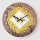 Rustic Sunflowers & Wood Texture Monogram Large Clock
