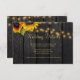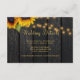 Rustic elegant stylish summer autumn fall wedding accommodation, directions, and other information enclosure card with gold typography script on dark brown barn wood featuring beautiful yellow gold sunflowers and string lights. +++++++++++++ The card is suitable for rustic country floral outdoor backyard or farmhouse weddings.
