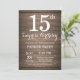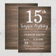 Rustic Surprise 15th Birthday Invitation. Rustic Wood Background. Vintage Retro Birthday. Kids Birthday. Boy or Girl Bday Invite. 13th 15th 16th 18th 20th 21st 30th 40th 50th 60th 70th 80th 90th 100th, Any age. For further customization, please click the "Customize it" button and use our design tool to modify this template.