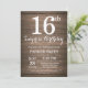 Rustic Surprise 16th Birthday Invitation. Rustic Wood Background. Vintage Retro Birthday. Kids Birthday. Boy or Girl Bday Invite. 13th 15th 16th 18th 20th 21st 30th 40th 50th 60th 70th 80th 90th 100th, Any age. For further customization, please click the "Customize it" button and use our design tool to modify this template.