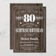Plain white envelopes are included with paper invitations and will come to fit the invitation size you select. If you don’t need the envelopes, you may choose to not receive them by selecting the dropdown below "Envelopes" and choosing "None." If you’d like to have a design on your envelopes, you can browse all of these available envelopes to find the design that complements your Rustic Surprise 80th Birthday Invitation.
