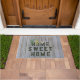 Stylish rustic country front door mat features "Home Sweet Home" text with forest cuttings graphic on faux weathered wood background