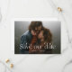 Elegant and stylish save the date card featuring a typography overlay text that says "save our date" with your horizontal photo. You can add a QR code on the back that links to your wedding website.