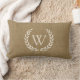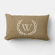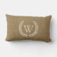 Rustic Tan Burlap Laurel Wreath Monogram Initial Lumbar Pillow