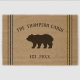 Welcome guests to your abode with this charming rustic farmhouse style doormat that's perfect for your cabin or country house. Personalized design features your family name in rich black lettering, along with your year established and a bear illustration. Rope stripe detailing on a classic tan coir fiber mat completes the design.