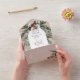 ALSO AVAILABLE WITH A QR CODE TO SCAN OR WITH DINNR SELECTION OPTIONS. This design features a rustic green pine and pinecone bouquet on a soft tan beige background with white flowers. It is accented with a white sparkle overlay to illustrate the magic of the beautiful winter holidays. Perfect for a Christmas or winter wedding. Personalized All-In-One invitations are a unique combination of both a beautifully printed custom invitation with an easy to tear off perforated RSVP postcard. And they are so easy to use! You simply fold, then seal the back flap with the three included clear stickers, and mail. And when your guests receive your custom invite, they just tear the perforated RSVP Card off and drop it back in the mail to you!