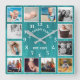 Showcase your cherished family memories with this rustic teal barn wood photo collage wall clock. This personalized clock features a weathered wood grain design and space for 12 of your favorite photos. Add your family name and established year for a unique and sentimental touch. Perfect for a farmhouse kitchen, living room, or bedroom, this clock is a beautiful way to display your photos and keep time.