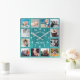 Rustic Teal Barn Wood Farmhouse 12 Photo Collage Square Wall Clock