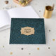 This whimsical guest book features an image of teal blue tooled leather. Note that the leather image is printed on the guest book--it is not actual leather. Perfect for rustic, country, or cowboy weddings.