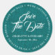 Rustic teal burlap wedding save the date stickers featuring an elegant script font.