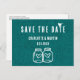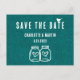 Minimalist rustic wedding save the date postcard with modern calligraphy ideal for a teal rustic country/backyard/barn wedding party.