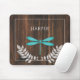Rustic Teal Dragonfly Personalized Mouse Pad