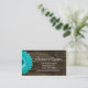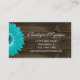 Rustic Teal Gerber Daisy Business Cards on a dark barn wood background. The turquoise flower really stands out against the dark background.