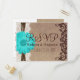 Rustic Teal Gerber Daisy Lace RSVP Postcards with a vintage distressed background, printed lace, and printed twine bow design. The are perfect for a rustic country wedding.
