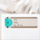 Rustic Country Teal Gerber Daisy Flower Return Address Labels with a vintage brown background, a teal turquoise blue gerbera daisy flower and a printed lace and twine design underneath the flower. These are pretty and cute country address labels.
