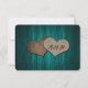 Rustic teal wedding RSVP card featuring a mason jar and burlap hearts against a rustic wood background. Easily personalize this cute rustic teal RSVP card online. Matching items available to complement this romantic rustic teal wedding RSVP card.