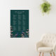This Rustic Teal Peacock Chinoiserie 9 Table Seating Chart Foam Board features hand-drawn blue and teal peacocks perched on Magnolia branches in full bloom in black ink against an elegant dark teal background. The seating chart includes 9 tables with 10 guests sitting at each table. The back features a pattern of these same elements. Personalize with your wedding details by clicking on "Personalize this template" on the product page.