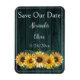 Announce your upcoming wedding day for family and guests with a Rustic Teal Sunflower Save the Date Magnet. Magnet design features a rustic wooden background with an elegant bouquet of sunflowers. Personalize with the groom and bride's names along with the wedding date. Additional wedding stationery and gifts available with this design as well.