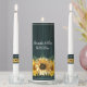 Personalize special candles for your wedding ceremony with a Rustic Teal Sunflower Wedding Unity Candle Set. Candle design features a rustic wooden background with an elegant bouquet of sunflowers. Personalize with the groom and bride's names along with the wedding date, and taper candles with surnames. Additional wedding stationery and gifts available with this design as well.