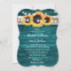 Rustic Teal Sunflower Wood String Lights Wedding Invitation