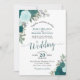 Rustic Teal Watercolor Roses Boho Floral Wedding Invitation