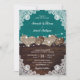 Rustic Teal Wood Burlap Lace String Lights Wedding Invitation