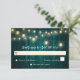 Rustic Teal Wood String Lights Wedding RSVP Card