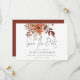 Rustic Terracotta Fall Florals QR Code Wedding. Gorgeous florals with a boho vibe in autumn shades of terracotta and cream and an elegant set script for Save The Date. The rest of the text you can easily personalise with your details. Add your QR code to your wedding website on the back or delete this and the text on the back if not required. Available digitally or printed.