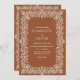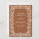 Rustic terracotta brown wedding invitation background with elegant white floral frame border, perfect for boho chic print on demand cards.
