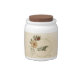 Unique candy jar featuring romantic rustic terracotta flowers and green leaves.