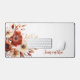 Rustic terracotta floral desk mat with name. Easy to change the text. Trendy watercolor autumn botanical.