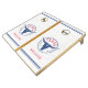 Natural Wood Cornhole Set, Red and Royal Blue bags