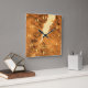 On this rustic housewarming clock is an image of the cowhide fur leather pattern of the Texas longhorn in warm burnt orange, beige and brown.