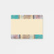 A set of 4x3 sticky notes with a cool looking rustic texture border along the bottom. Vertical stripes of red yellow and green paint flaking and peeling off a rusted old metal wall. Looks old and weathered and faded. The background of these sticky notes is a desert toned terracotta brown.