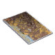 A spiral notebook with a cool looking rustic texture as a background. Yellow paint and rust mixed together peeling off a rusted old metal wall. Looks old and weathered with a grunge urban style.