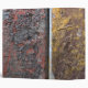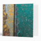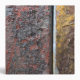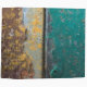 A binder with a cool looking rustic texture as a background. Vertical stripes of red yellow and green paint flaking and peeling off a rusted old metal wall. Looks old and weathered with an urban grunge style.