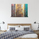 A wrapped canvas print with a cool looking rustic texture as a background. Vertical stripes of red yellow and green paint flaking and peeling off a rusted old metal wall. Looks old and weathered with an urban grunge style.