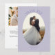 Elegant and rustic wedding thank you card featuring a oval shaped lilac frame with text that says "thank you" on the top. You can add a 2nd picture on the back along with your message.