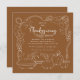 Gather loved ones in style with this rustic Thanksgiving dinner invitation featuring a warm brown background, hand-drawn harvest illustrations, and elegant typography. The design showcases pumpkins, pie, acorns, and autumn leaves — perfect for inviting family and friends to a cozy holiday feast. Personalize with your event details to create a charming and festive invitation for Thanksgiving dinner, Friendsgiving parties, or fall harvest gatherings. A timeless seasonal design that sets the tone for gratitude and celebration.