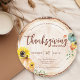 Celebrate Thanksgiving in style with this rustic round dinner invitation featuring a unique wood slice design adorned with watercolor pumpkins, sunflowers, and autumn foliage. Perfect for fall gatherings, Friendsgiving, or family feasts, this cozy and elegant invite blends farmhouse charm with seasonal beauty. Easy to personalize with your dinner details, this invitation sets the tone for a warm and memorable holiday celebration.